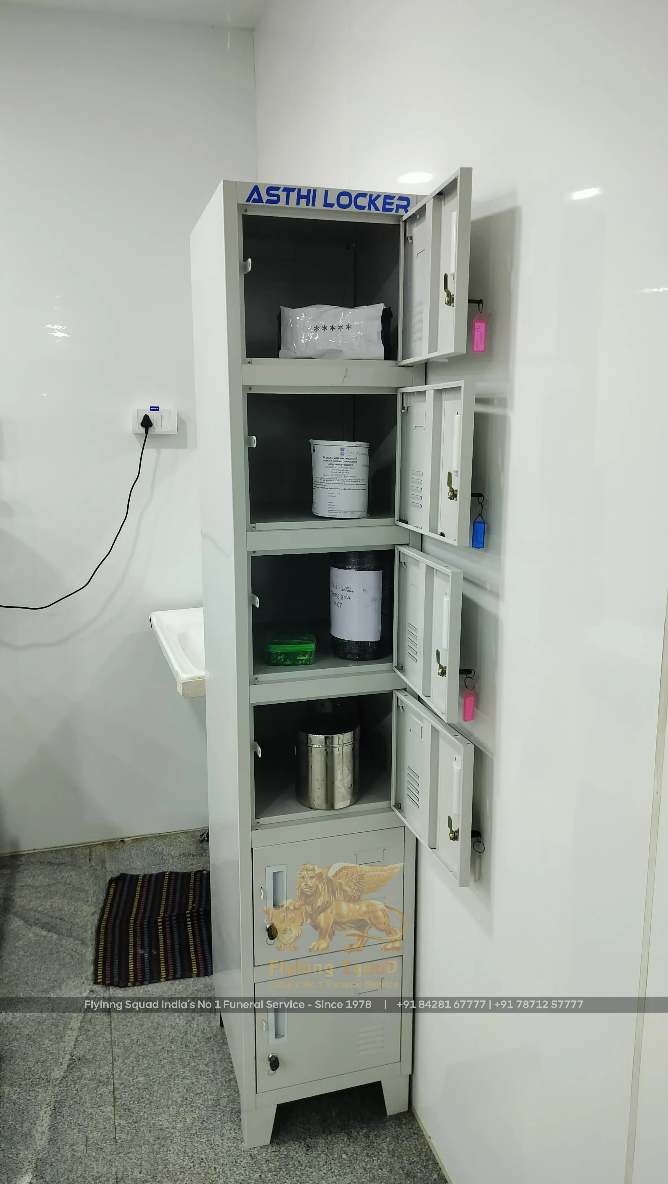 These lockers serve as a secure and respectful place to store ashes until they are immersed in rivers or other bodies of water, as per Hindu funeral customs.