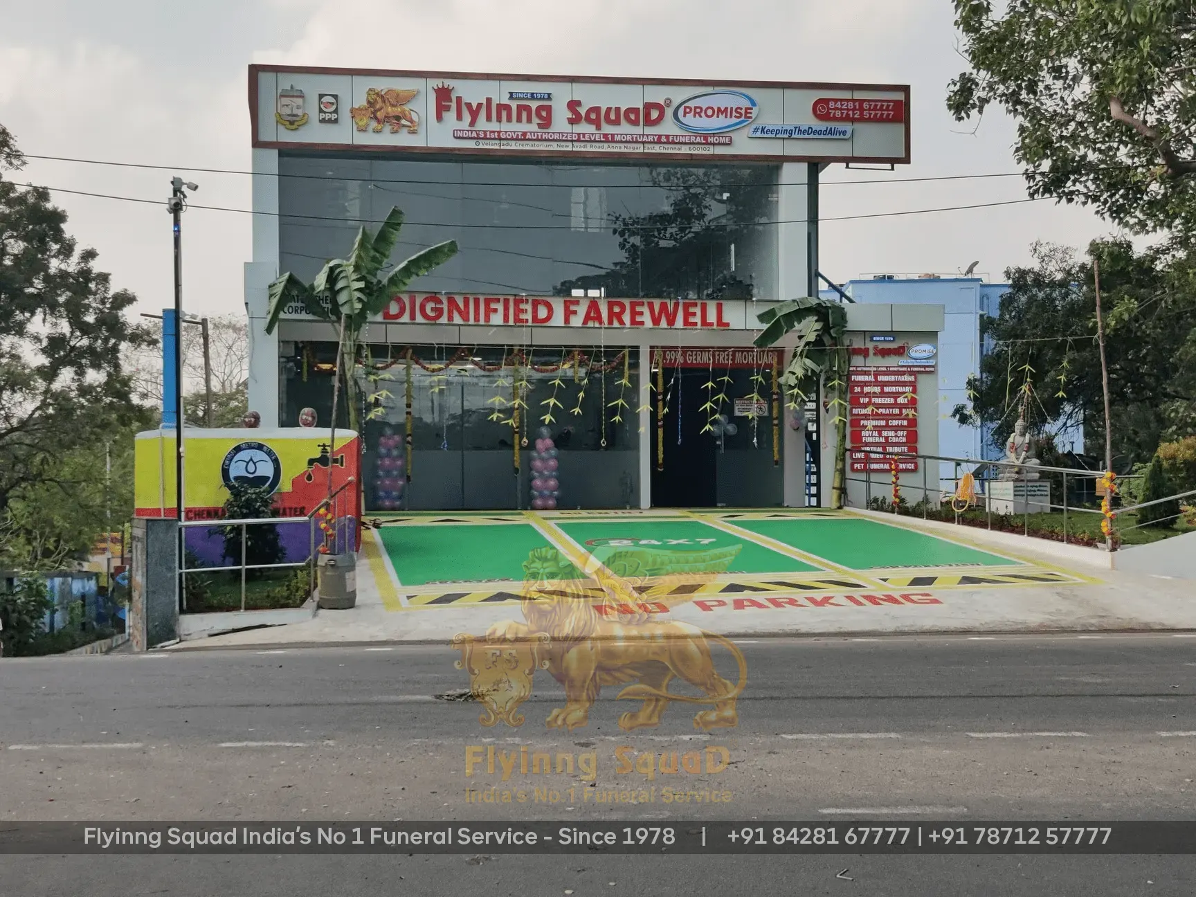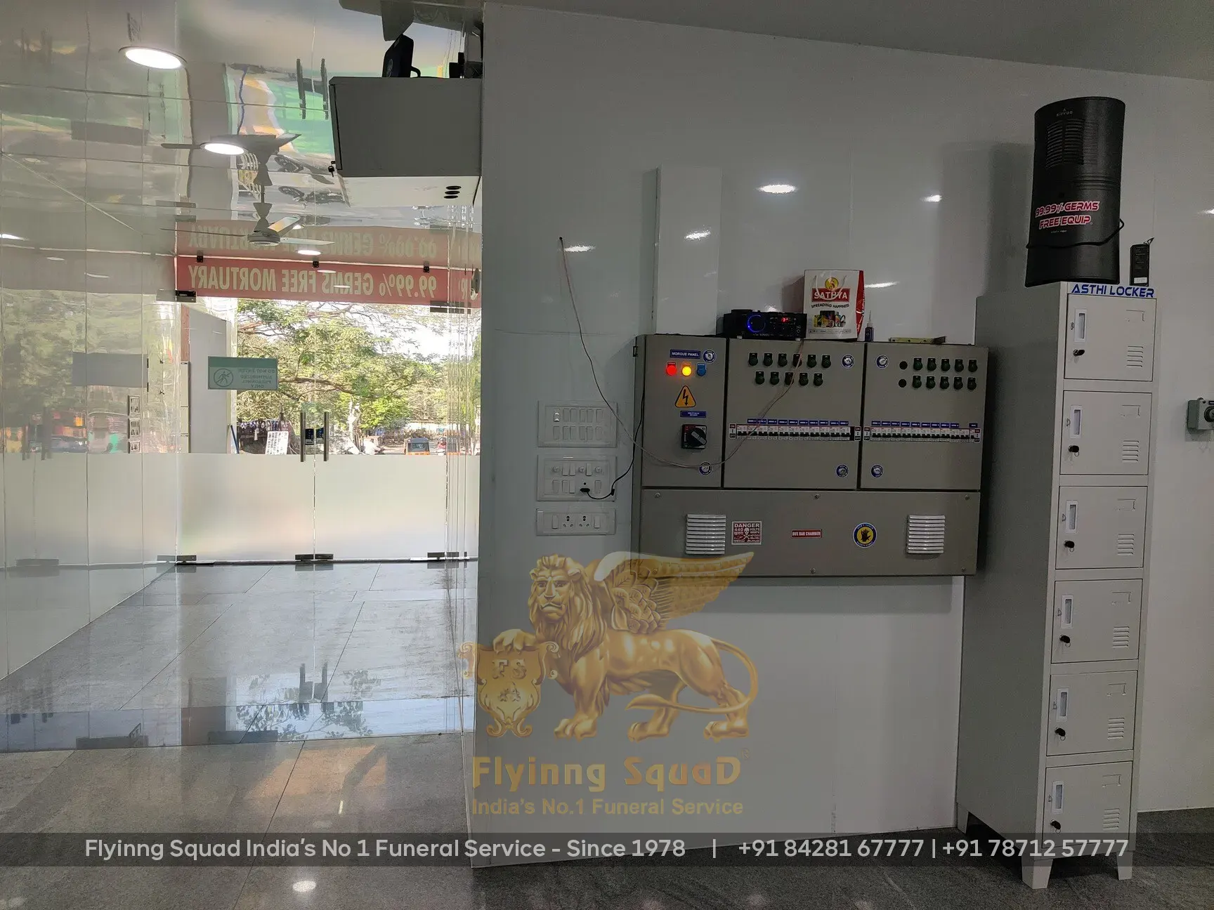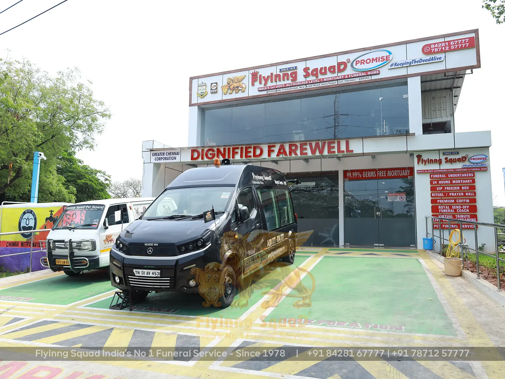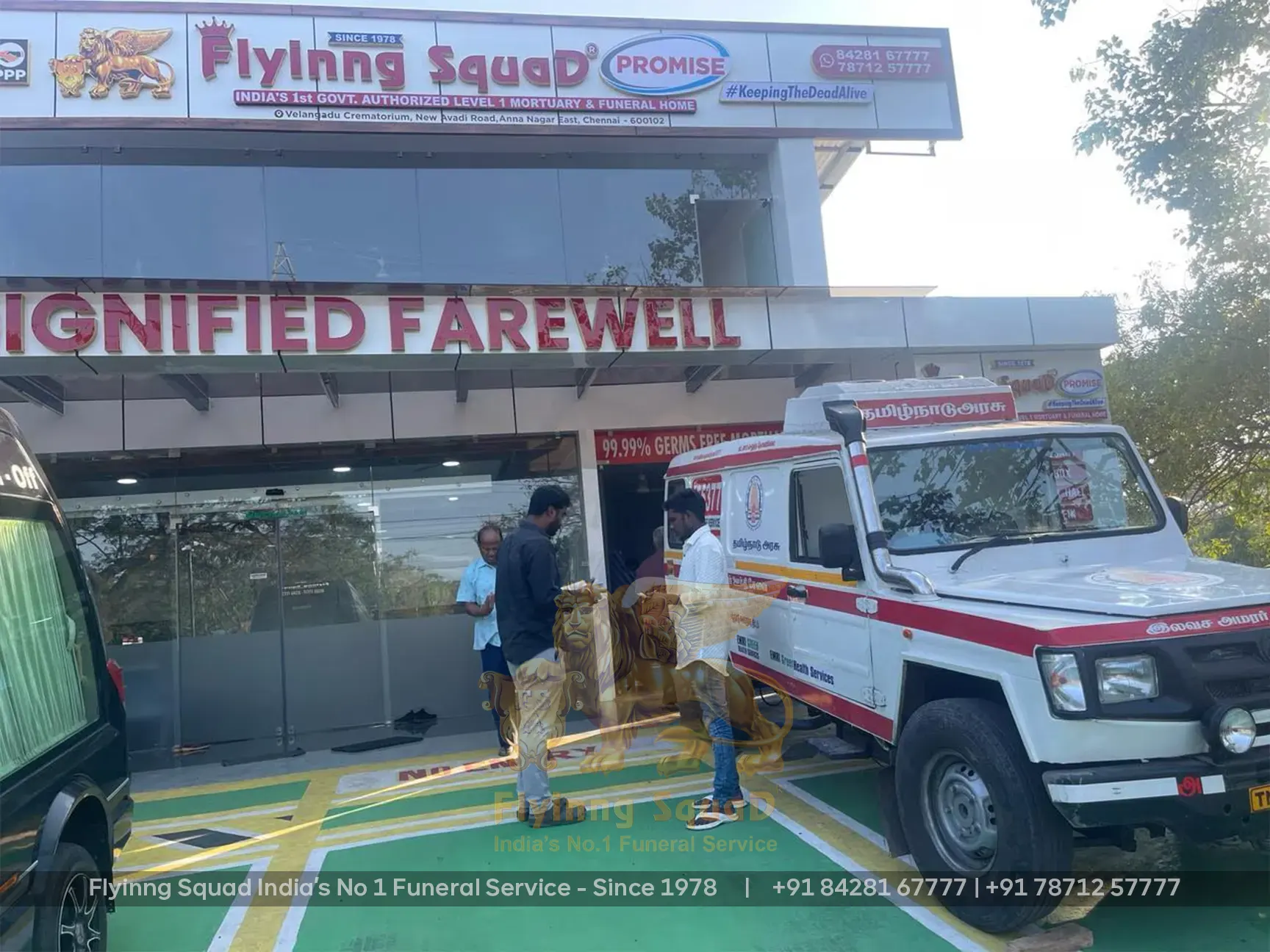 Flyinng Squad provides India's first ultra-modern private mortuary in Chennai, a 99.99% germ-free deep freezer storage facility built in collaboration with the Greater Chennai Corporation, Government of Tamil Nadu. Our facility can house 10 to 15 remains, preserving them at -35°C for 10 to 30 days without embalming, reducing the cost of the funeral for families while maintaining dignified preservation.