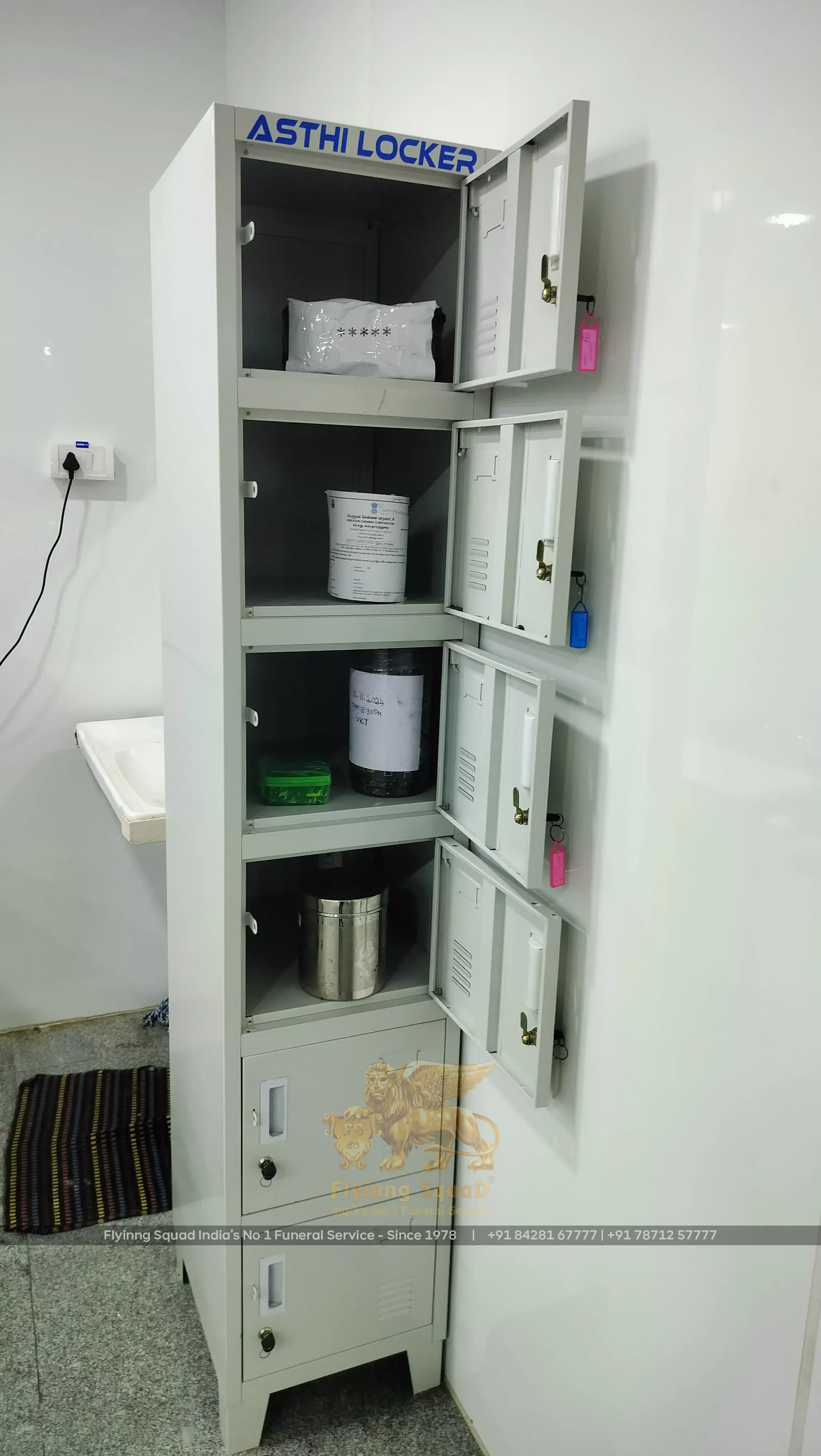 These lockers serve as a secure and respectful place to store ashes until they are immersed in rivers or other bodies of water, as per Hindu funeral customs.