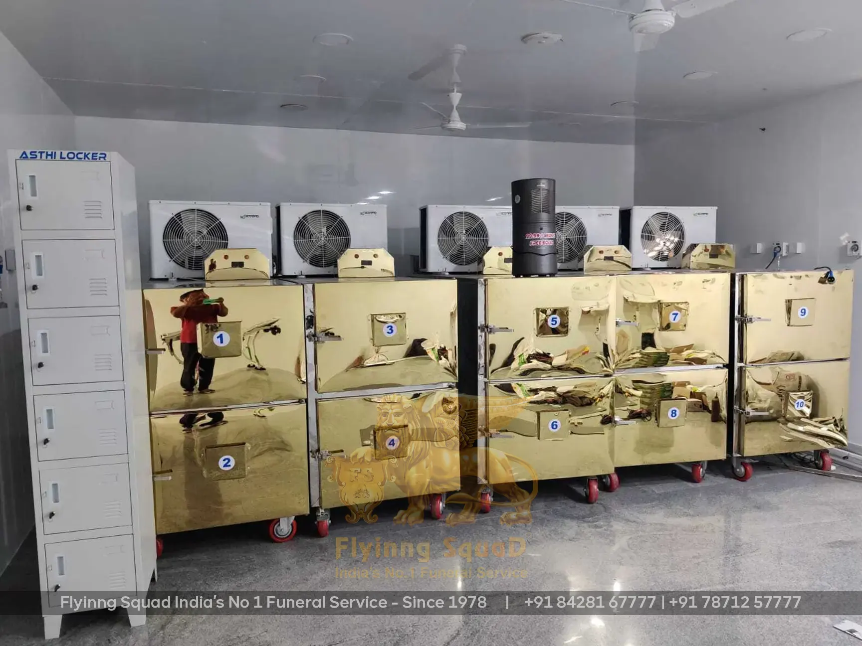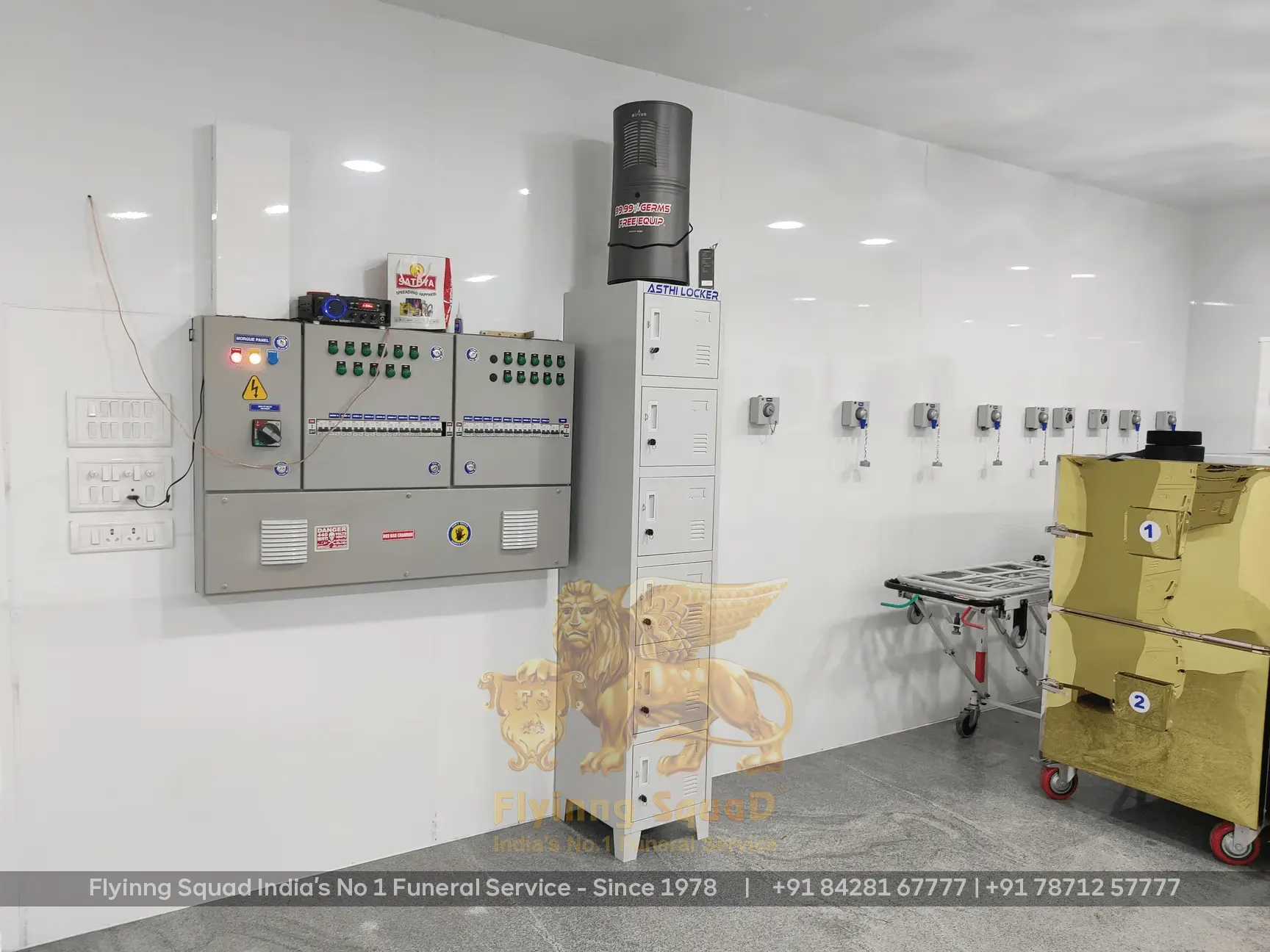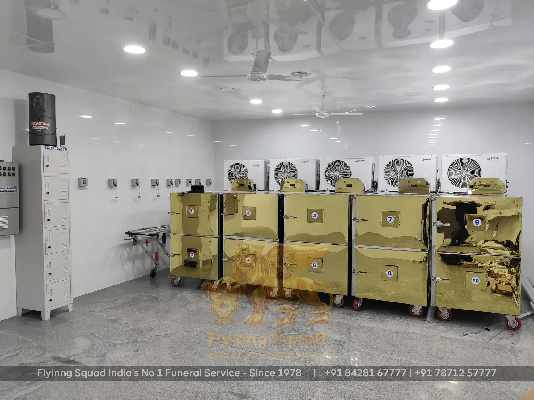 Flyinng Squad provides India's first ultra-modern private mortuary in Chennai, a 99.99% germ-free deep freezer storage facility built in collaboration with the Greater Chennai Corporation, Government of Tamil Nadu. Our facility can house 10 to 15 remains, preserving them at -35°C for 10 to 30 days without embalming, reducing the cost of the funeral for families while maintaining dignified preservation.