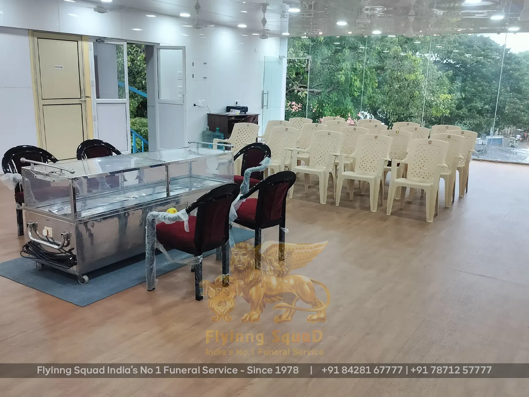At Flyinng Squad we provide a Ritual and Prayer Hall for conducting Funeral Ceremonies and to give peaceful farewell to the departed soul at an 99.99% Germs Free Atmosphere (with bathrooms and toilets), a distinct facility that provides both sanitation and peacefulness.